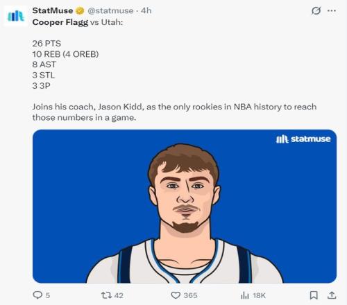 5.弗拉格拿到26+10+8+3抢断+3三分,成为NBA历史基德后首位能单场达成这样数据的球员;