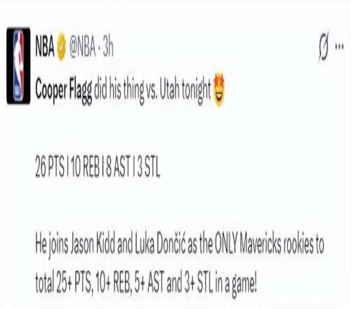 3.弗拉格新秀赛季拿到第三次单场25+5+5,仅次于詹姆斯、东契奇;